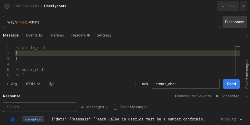 위 코드 처럼 HttpException 에러가 발생할 경우, 에러 메세지를 exception이란 이벤트로 소켓에 emit하면 된다.
