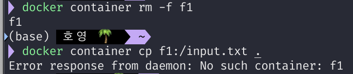처음 실행했던 컨테이너(f1)을 삭제하고 수정된 데이터가 사라진 것을 확인해보자.
