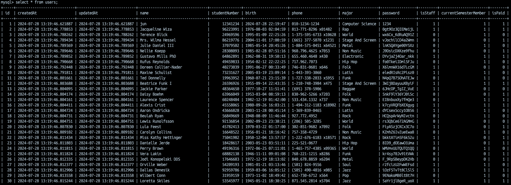 db에 랜덤 데이터가 잘 들어간 것을 볼 수 있습니다.