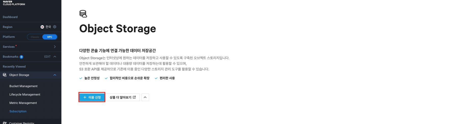 1. Object Storage 접속(NCP Console로 들어가면 된다.)