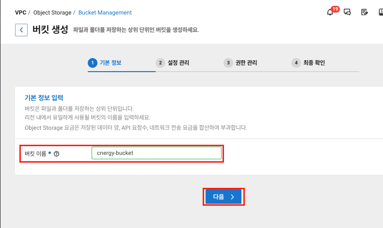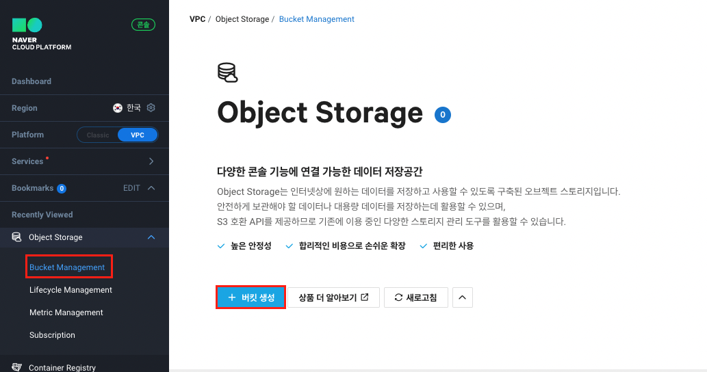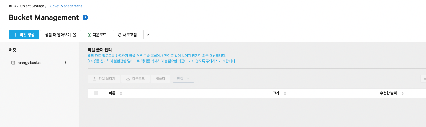 Object Storage에 생성한 bucket을 사용하면 된다!
