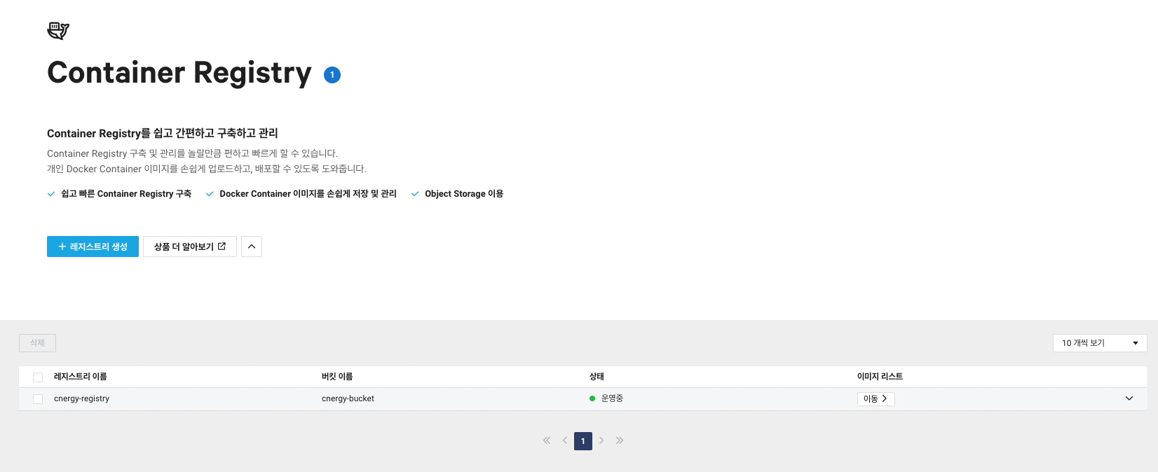 NCP에선 프라이빗 도커 컨테이너 이미지를 보관하고 , 관리, 배포할 수 있는 서비스를 제공한다.
