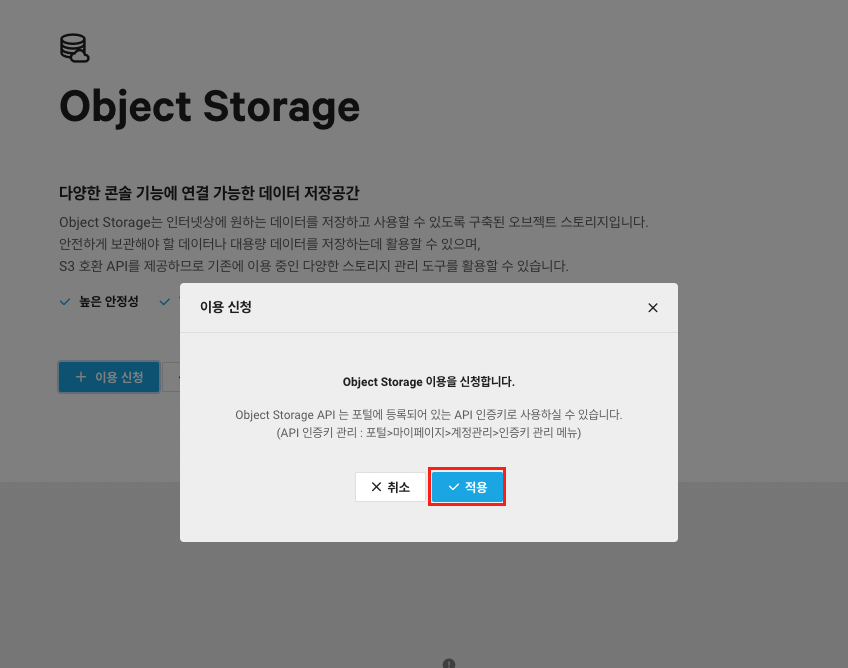 다음 순서를 따라가 Object Storage를 만들어보자.