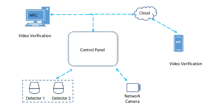 IVaaS : 탐지기 + 컨트롤 패널 + 네트워크 카메라 + 알람 수신기 + 클라우드 서비스