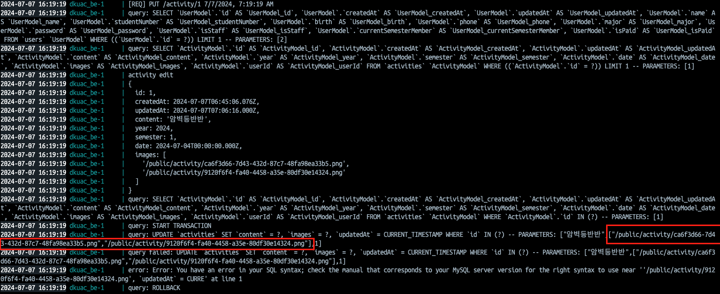 [DKUAC] 사진이 있는 글 수정 시 사진을 제외하고 수정하는 경우 에러 발생