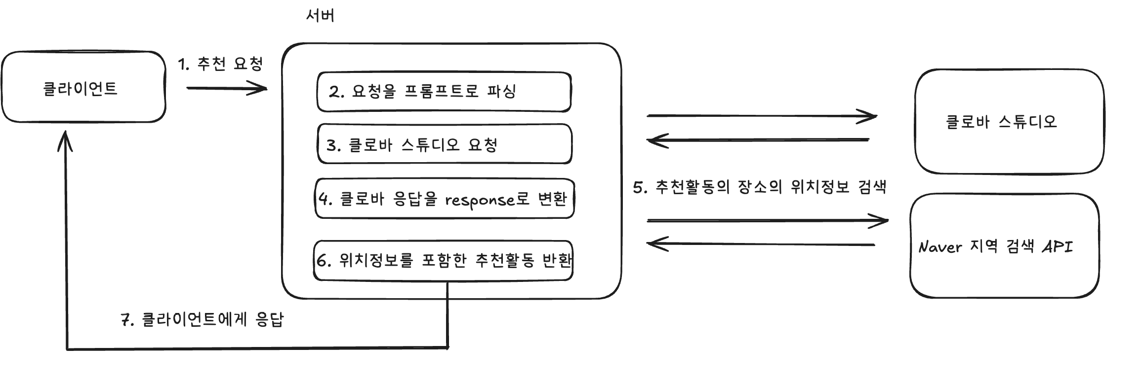 4. Clova Studio에서 온 여러 추천 활동 장소의 세부 정보를 Naver 지역 검색 API를 통해 제공한다.